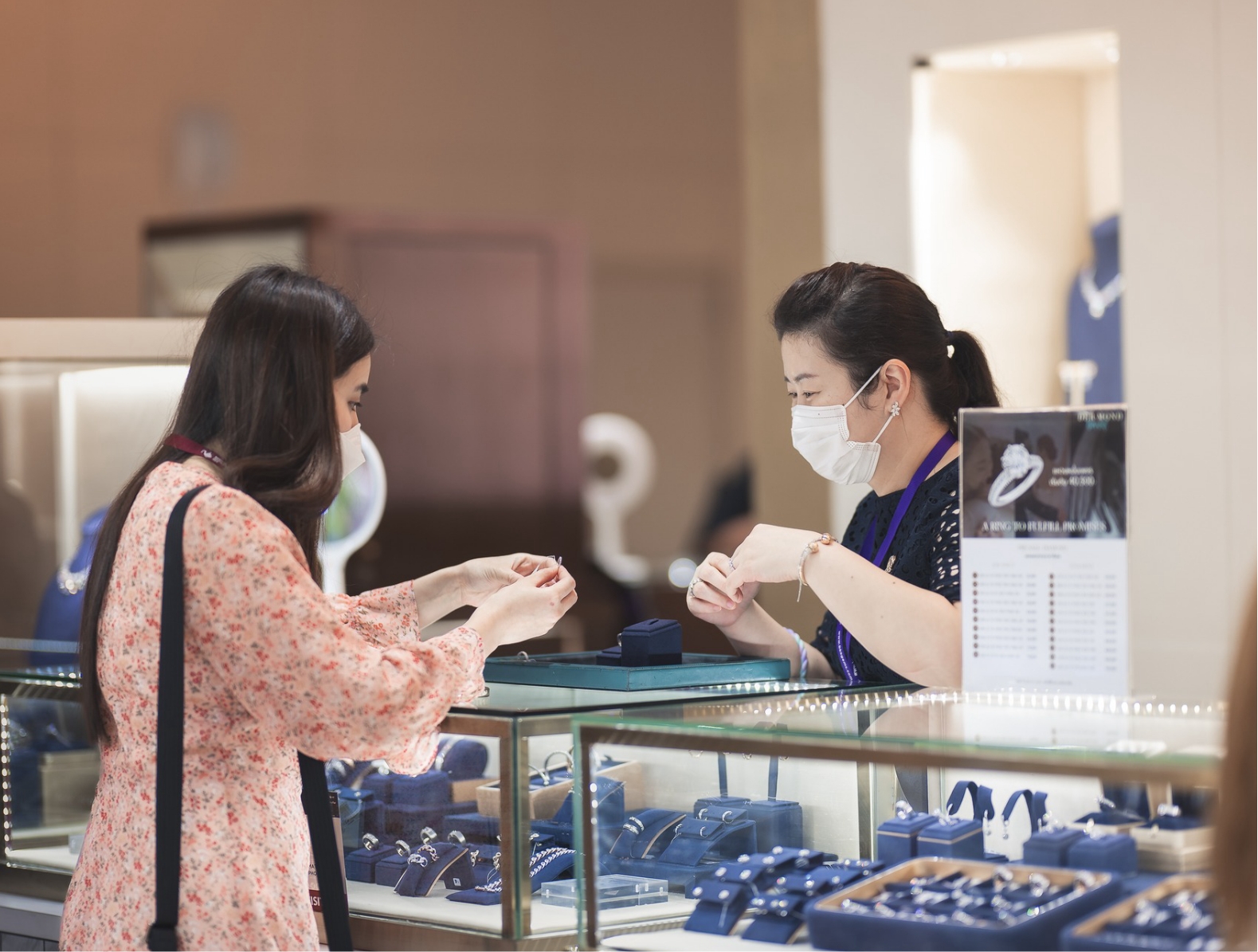 – Sản phẩm trưng bày: đá quý, đá bán quý, đá thô, đá tổng hợp, kim cương, ngọc trai, kim loại quý, trang sức thời trang, trang sức cao cấp, trang sức vàng và bạc, dụng cụ trưng bày trang sức, máy móc, thiết bị và dụng cụ chế tác trang sức