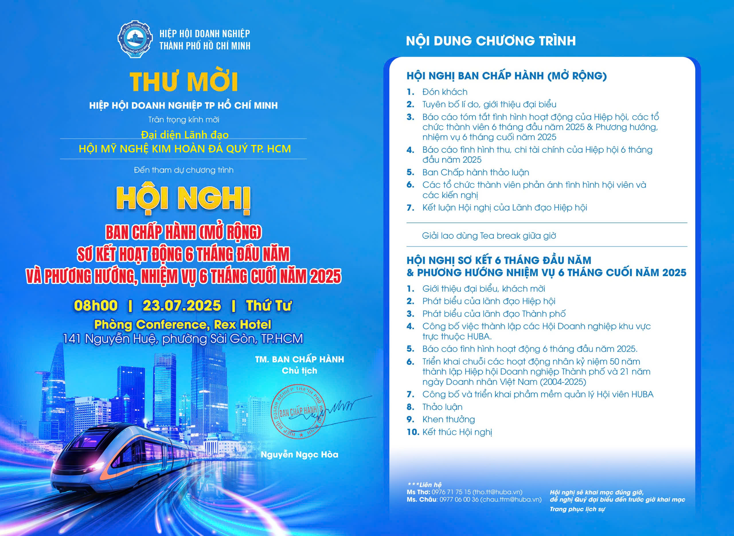 Hội nghị có sự tham dự của lãnh đạo UBND TP.HCM, các sở ban ngành cùng gần 100 đại diện các tổ chức hội ngành nghề là hội viên HUBA. Đây là hoạt động thường niên quan trọng nhằm tổng kết, đánh giá kết quả triển khai các chương trình hỗ trợ doanh nghiệp, kết nối hội viên trong 6 tháng đầu năm, đồng thời thảo luận, đề xuất phương hướng hoạt động thiết thực cho 6 tháng cuối năm 2025.